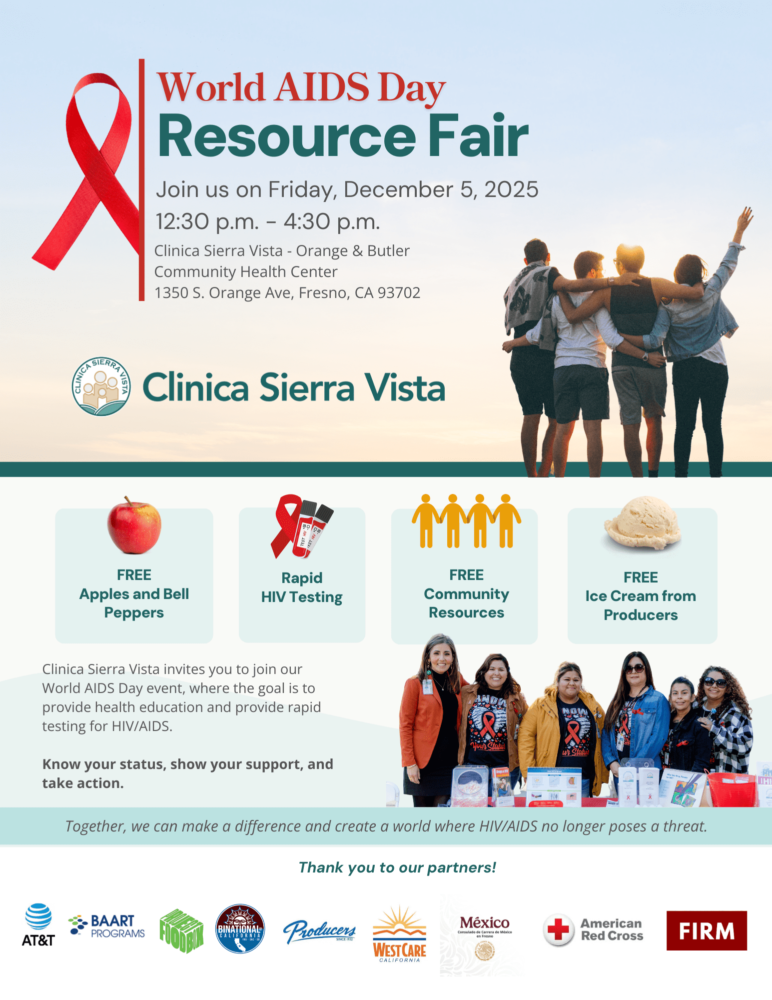 Orange & Butler Community Health Center 1350 S. Orange Ave, FresnoJoin us for World AIDS Day Resource Fair on Friday, Dec. 5, at our Orange & Butler Community Health Center! Enjoy rapid HIV testing, complimentary ice cream, and the opportunity to connect with community partners including WestCare, Project Food Box, the Consulado de México, and many more. We look forward to seeing you there as we […]
