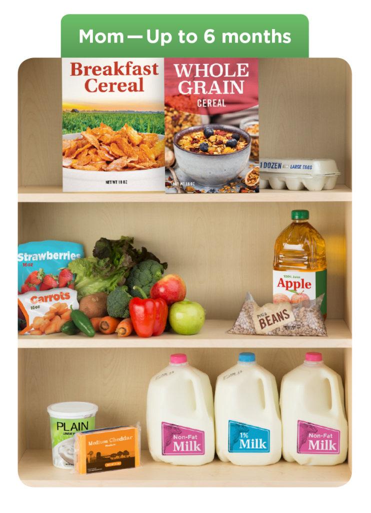 WIC foods are carefully chosen to give moms and kids the nutrients they need most, like calcium, iron, protein, and fiber. Food packages change as your family grows to make sure everyone’s needs are met.