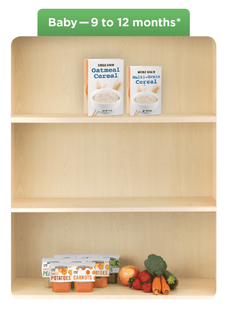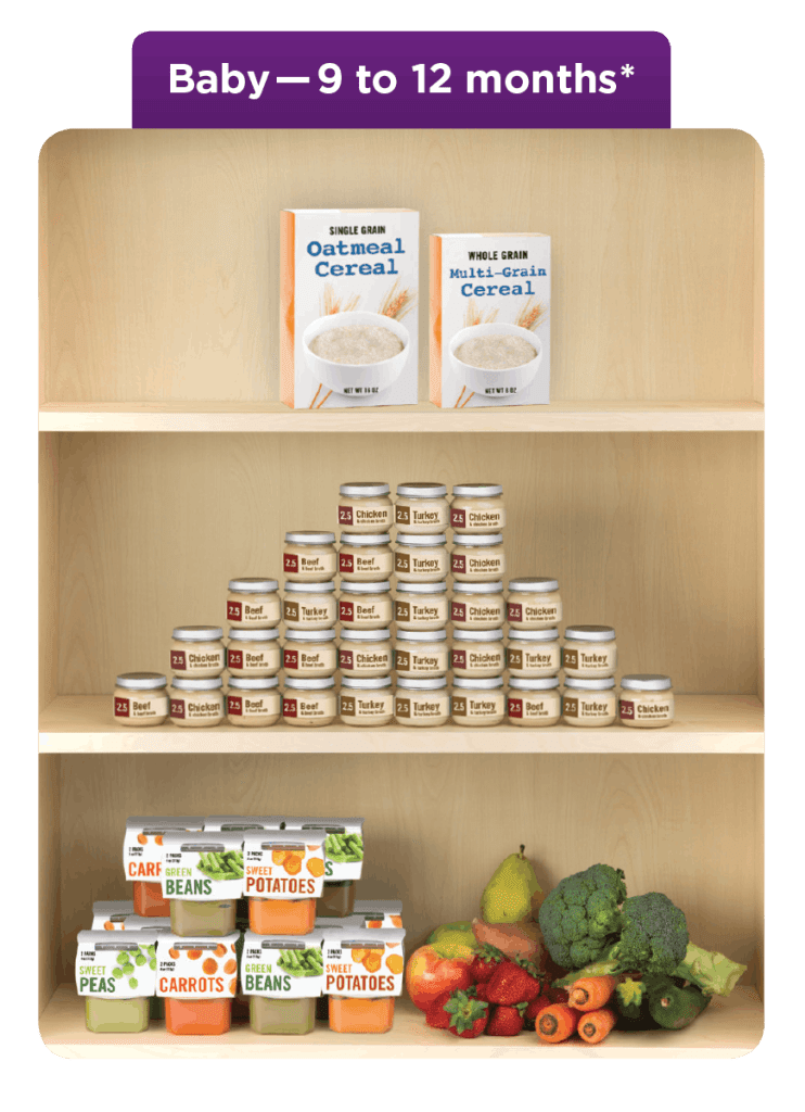 • *When your baby is 9 months, you can change to a food package with some fresh fruits and vegetables